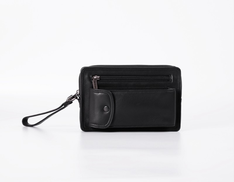商务手拿包,前面有放手机的口袋和一个拉链袋。主袋两层,随身物品可分开存放。